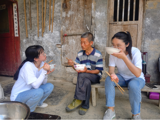 入户暖人心。12日上午6:00,实践团一行来到沙塘村牧羊组,走进空巢老人、困境老人家中。除了给老人送慰问品、开展一般健康检查和健康宣教外,还在老人家中打扫卫生,给老人做饭,陪老人拉家常、玩游戏、拍萌照,并将拍下的照片发给老人外出打工的子女。一幕幕温馨的画面,一句句暖心的话语,一声声关切的问候,温暖着老人的心。