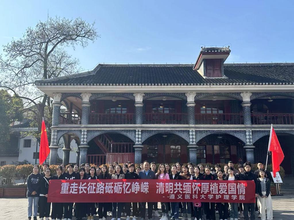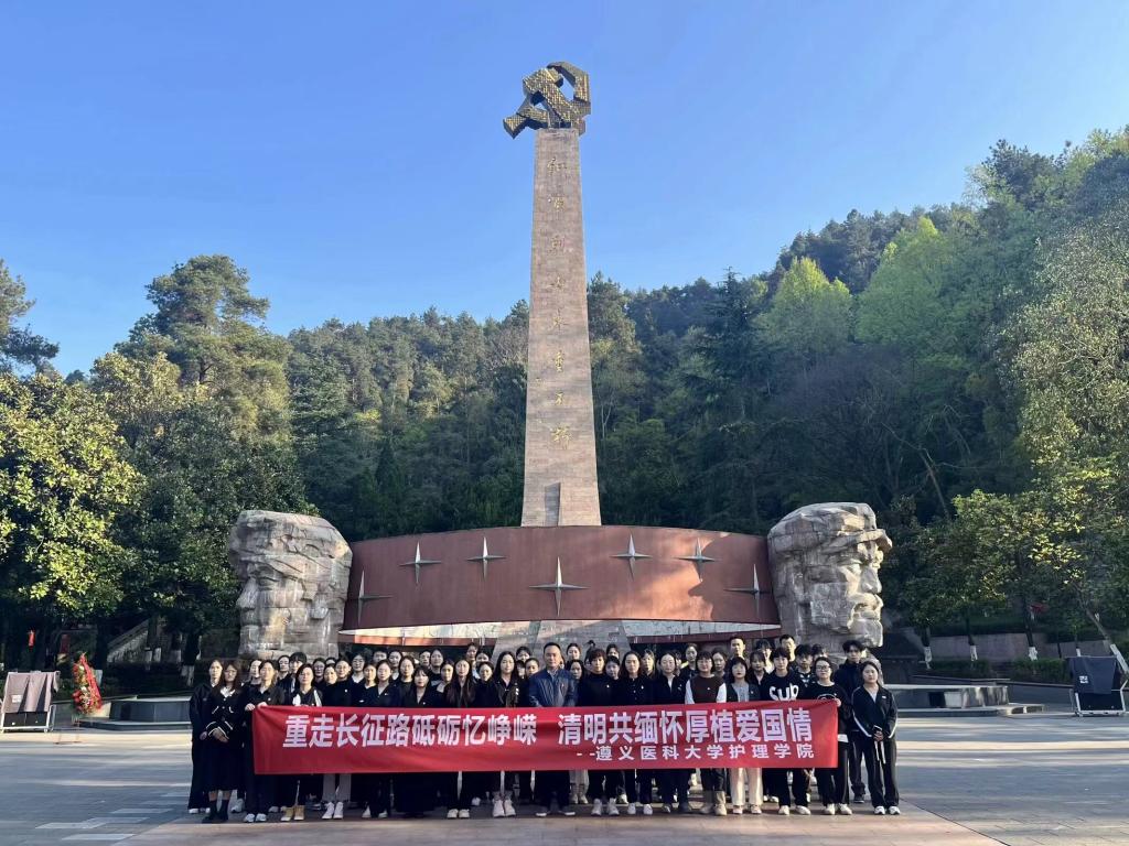 清明祭先烈 缅怀砺初心。3月29日7:00,公司党委副书记陈伟,公司党委委员、员工第二党支部书记权明桃老师带领师生从大连路校区出发,迎着朝阳、激情昂扬地步行前往遵义红军烈士陵园。在庄严肃穆的氛围中,师生敬献花篮,鞠躬默哀,全体党员重温了入党誓词,立志不忘入党初心,践行医学使命。随后,师生代表铿锵有力地朗诵了红色经典诗歌《仰望长征》,表达了对革命先烈的崇高敬意,在员工代表康莉雯的讲解下,大家先后瞻仰了红军烈士纪念碑、邓萍墓、红军坟,追忆先烈们的丰功伟绩。