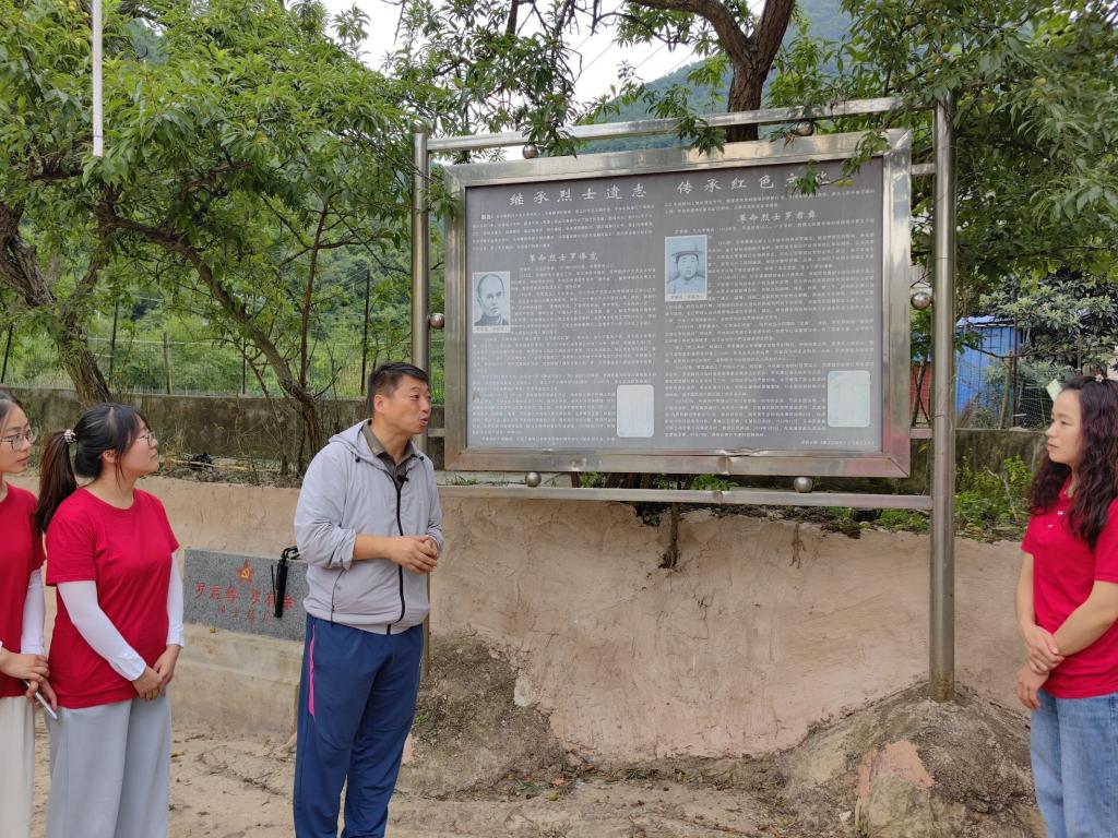 伴随着清晨和煦的朝阳,实践队走进遵义革命志士罗俸宽、罗俸余、罗俸永、陈沂的家乡—平溪村合心组。黄勇书记向大家讲述了他们为革命事业作出突出贡献、献出宝贵生命的感人故事。随后,黄勇书记带着大家沿着当年红军遵湄绥游击队的活动轨迹走进磨刀溪战斗遗址。在碗架坎、磨刀溪、范家石三个重要活动点向大家讲述了史称“磨刀溪战斗”的详细经过以及红军牺牲的英勇事迹。在磨刀溪战斗遗址陈列馆,平溪村老教师罗光发向大家讲述了罗其昌、罗向成等村民为遵湄绥游击队红军煮饭送饭、掩护红军藏在家中的鱼水深情故事,队员们听了感慨万千。