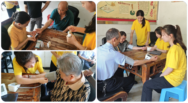 活动现场,实践团师生充分利用专业知识为老人们测量血压、血糖,并结合老年人常见健康问题,用通俗易懂的语言讲解高血压、糖尿病预防知识;现场演示手指操、穴位按摩等保健技巧。敬老院负责人表示:“这些实用知识能帮助老人建立科学健康观念,是他们日常所需要的,体现了护理教育的专业性,也希望你们能经常来陪伴他们”。