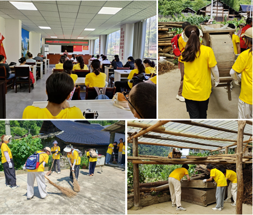 ——参与乡村“两清两改两治理”工作,为美丽乡村建设书写青春力量。在社区开展实践活动期间,实践队员们参加了社区“两清两改两治理”专项工作,与村干部一起串巷入户,以政策宣讲、案例解读等形式,向居民细致阐释环境整治要点,引导群众主动参与环境卫生清理、摒弃不文明习惯、共商治理良策等,并与基层工作人员一起加入到“两清两改”实际劳动中,清除乱堆乱放、乱搭乱建、乱贴乱画等现象,参与残垣断壁清理清除,为提升农村人居环境质量,打造干净整洁美丽乡村贡献青春力量。